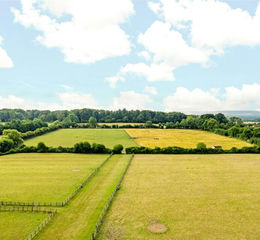 The property has over 2,630 sq. ft. of outbuildings. The U shaped stable block has weatherboard elevations under a clay tiled roof and has eight separate stables of varying sizes and an open fronted storage area. In one corner there is a tack/staff room which has a kitchenette with a range of units, two sinks and an oven, a door to a three piece shower room, and a door to a staff sitting room. On one side of the stable block there is a separate hay barn and there is also a shed. Opposite the stable block there is a manège which is surrounded by post and rail fencing and has a sand surface. The rest of the land is divided into paddocks which are enclosed by post and rail fencing with mature trees and hedges on the boundaries.