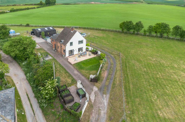 Directions - From Ross-On-Wye, proceed out along the A40 through Weston Under Penyard, carrying on into Ryeford until you come to a set of S bends. Just before the third bend, you will see a gravel track off to your left hand side. Turn left up to the track, proceed to the very end and the property will be found in front of you, to the right, as marked by our 'For Sale' board.