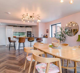 Kitchen / Dining Room - 8.13m x 4.72m (26'8 x 15'6) - Sink unit with mixer tap, cupboards under, range of base and wall mounted units, integrated double oven, four ring hob with cooker hood above, integrated fridge / freezer, breakfast bar, double radiator, side aspect windows with a private outlook. Sliding door to: