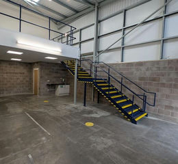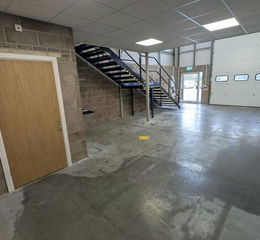 This end of terrace unit provides a mix of light industrial and warehouse space with 1first floor mezzanine. The unit is built on a steel portal frame with low-level brick fascia with micro-rib cladding system above under an insulated profile metal sheet roof.