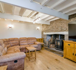 From here, you enter the cosy living room, a warm and inviting space complete with a charming log burner, ideal for relaxing evenings.