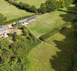 The property sits in a plot extending to 2.5 acres comprising garden and paddocks. The gardens enjoy privacy and seclusion with a large patio to one side leading on to areas of lawn with five bar gate giving access to the nearest paddock and leading to the two stables with concrete apron and part covered front. There is also a good sized room used previously as an office, gym and now storage with large double glazed picture window overlooking the paddock. Driveway from Lower Mead End Road provides ample parking and turning and leads up to a large open pole barn providing very useful storage with opening to side into the main paddock.
