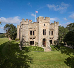 In addition to the Castle, the property includes a 2 bedroom Lodge, with courtyard outbuildings positioned at the entrance of the private tree lined drive leading to a range of Grade II Listed buildings currently providing storage and garaging.