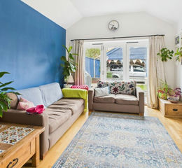 A pleasant room with windows to the side and bi fold doors opening to the rear garden. Full volume ceiling, radiator, attractive wood flooring.