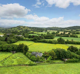 The property has a sweeping tree lined private drive which leads you up to the gravelled courtyard to the front of the property providing plenty of parking. Enveloped in its own gardens and paddock measuring 3.13 acres, the species of trees planted are oak, silver birch, mountain ash, and a sweet chestnut. Enclosed paddock and field shelters to the front of the property and the immediate gardens with nature planting and lawns adjacent and to the side and rear are lawned gardens and mature borders with an additional wild meadow planting. Detached timber frame stabling on a concrete pad. Leading out from the sitting room across the bridge is a delightful stone terrace with plenty of space for alfresco dining. Leading out direct from the kitchen is a decking area, westerly facing enjoying the evening sun. Taking in some splendid views over the surrounding countryside and paddock. Super place to have your breakfast.