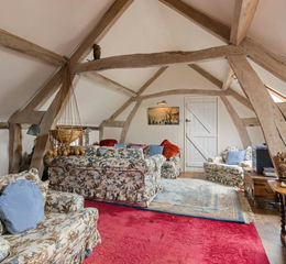 Upstairs, you'll find a cosy study which could act as a fourth bedroom for guests if necessary. A breath-taking sitting room enjoys vaulted ceilings and exposed timber beams. A fabulous and spacious room with an abundance of charm and character which acts as an excellent socialising space.