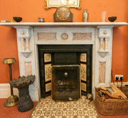 with delightful original mosaic tiled flooring throughout, fireplace with wood burning stove inset, built in storage cupboard with glazed display cupboard over, 2 radiators, 3 Upvc double glazed windows to the side and Upvc double glazed window overlooking the garden, door to