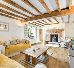 Double glazed window to front, multi-fuel burning stove inset to fireplace, exposed ceiling beams, radiator.
