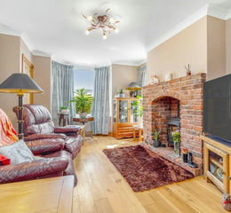 Sitting Room 3.80m x 3.57m - The sitting room enjoys a double aspect with uPVC windows to the side and front, exposed brick fireplace with inset Clearview wood-burning stove, understairs cupboard and door to the entrance hall.