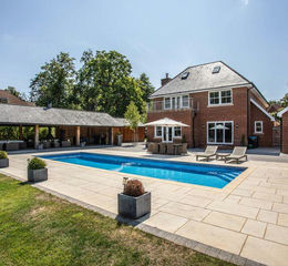Built to the highest specifications and further enhanced by the current owners, this beautiful country residence showcases large spacious well-appointed accommodation arranged over three floors. Amassing to approximately 7,060 sq ft (including the garages and outbuildings) the property offers luxurious and comfortable family living spaces with opulent touches throughout and bespoke fixtures and fittings. There are four reception rooms on the ground floor along with a sizable kitchen/breakfast room with upgraded range of integral appliances. The bespoke french oak staircase leads to the first floor where four bedrooms reside serviced by en-suite facilities. It should be noted that the principal bedroom has a balcony looking out over the rear garden and benefits from a recently refitted en-suite bathroom. Stairs lead to the second floor where there is a family bathroom and two further bedrooms, one currently fashioned as a gym and the other a large cinema room. Accessed via a set of electronically controlled gates, the gardens and grounds of approximately 1.6 acres have been beautifully landscaped and house a range of useful recently erected outbuildings. A sizable terrace adjoins the rear of the property surrounding a central heated outdoor swimming pool. Overlooking the terrace is an open sided pavilion providing a wonderful space to relax or entertain with a central wood fired burner, barbecue area and integrated outdoor lighting and speakers. Further outbuildings include a pool house with kitchenette and shower facilities and a large workshop with store. The rear garden is predominantly laid to lawn with a range of specimen trees. The resin driveway at the front of the property provides ample parking and access to the detached double garage with electronically controlled doors and is wired for E.V. point.