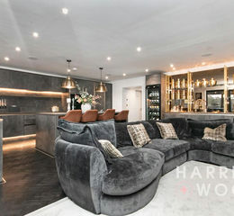Upon arrival, the property makes a striking first impression. The grand entrance hallway is flooded with natural light from an impressive skylight, setting the tone for the high-quality finish that continues throughout. Beneath the staircase, a bespoke wine cellar offers a captivating focal point — a sophisticated feature designed for the discerning connoisseur.