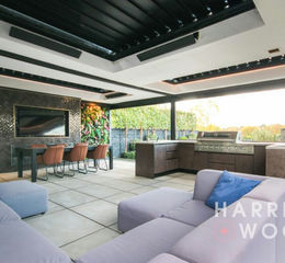 - Stunning outdoor entertaining space with fully equipped kitchen and fireplace