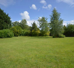 Arrival at The HawthornsA private driveway lined with mature trees and bushes guides up to the plot. Following this, the land unfolds as a fully-lawned, south-west-facing area with a bungalow nestled amongst its greenery. The entire plot is enclosed by established trees and hedges, some protected by Tree Preservation Orders. To one side, a wooded area with various pathways through, offers a shaded retreat.