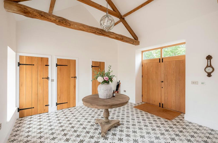 - Grand entrance with bespoke tiling, oak beams and cloakroom