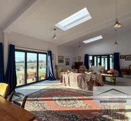 Enjoying a super location within the picturesque Norfolk countryside, this remarkable four-bedroom detached former farm building has been beautifully reimagined into a sophisticated and inviting family home, offering a rare chance to embrace both character and contemporary comfort. Set in approximately two acres of private grounds, it enjoys sweeping panoramic views and spectacular sunsets that bathe the landscape in warm colour, creating a serene rural haven with a sense of space and freedom. Inside, the home flows with light and openness, anchored by an impressive 43ft open-plan kitchen and living area enhanced by elegant pendant lighting and recessed ceiling downlights. Throughout, solid oak latch doors with cast iron furnishings, oak staircase and balcony balustrades, and an attractive stone tiled floor celebrate craftsmanship and style, bringing warmth, quality, and timeless appeal to every corner.