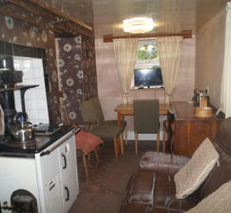 Living/Breakfast Room 14' x 6' with oil-fired 'Cleopatra' range heater/cooker set in tiled