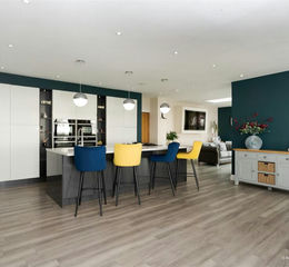 Entrance Hall - 4.14m x 6.45m (13'7 x 21'2) - Entered via oversized composite double front door with inset double glazed vision panels. Open hallway with attractive centralised oak staircase leading to first floor landing. Skimmed walls and ceiling with range of inset LED spotlighting and surround sound system. Doorway opens through into both kitchen/living/family room and drawing room. Further UPVC double glazed door opening out onto rear garden. Composite wood effect flooring. Half wood panelled walls.