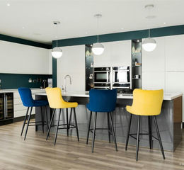 Kitchen - 6.30m x 4.78m (20'8 x 15'8) - Six door run of cantilevered bi-folding doors in a white UPVC. Stepped effect L shape bar area and granite work surfaces. Range of handleless graphite wall and base units with oak work surfaces. Stainless steel sink and drainer with pull over power tap. Space for built under fridge/freezer. Industrial drinks fridge and ice machine. Skimmed walls and ceiling with inset LED spotlighting and surround sound system. LED pelmet lighting. Freestanding corner barrel multi fuel burner set on a slate hearth with underset log store. Fitted radiator. Range of electric roller blinds set into bi-fold doors. Oak pocket door opens through into;