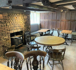 Continued in the same style with painted exposed stone walls, exposed ceiling beams and sharing the Bar Servery.
