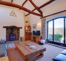 Come on in through the front entrance with flagged floor. A small flight of stairs leads up to the L-shaped main reception room with lovely spaces for both sitting and dining. To one end is the Inglenook fireplace with wood burning stove. The large window allows natural light to flood in and beautifully frames the view of the garden and open countryside beyond. A step leads down to the study.