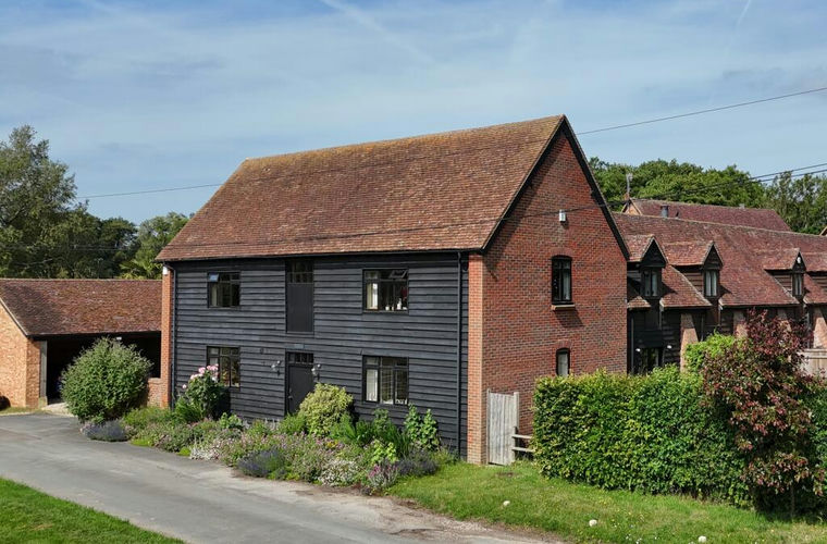 The Hayloft is tucked away in a peaceful rural setting with sweeping views towards the Chiltern Hills, a beautifully converted character home forming part of a late Victorian farmstead. Formerly used for storing hay, the building was thoughtfully converted in 1998 and retains striking original features, including exposed A-frame beams and a vaulted landing. One window still marks the former hay-loading opening—now a unique architectural detail. The wide front door opens into a light-filled entrance hall with pine floorboards and a soaring gallery ceiling. To the left is a cloakroom and staircase, while to the right, a spacious reception room, (currently a home office) enjoys far-reaching views across open farmland to the Chilterns and would also suit use as a formal dining room.