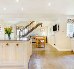 A concealed staircase from the first floor hall leads up to the second floor and the bright and airy principal suite. Light décor and subtle lighting highlight the exposed beams. The expansive bedroom has a private dressing room and a fully tiled en-suite shower room with a contemporary boutique style.