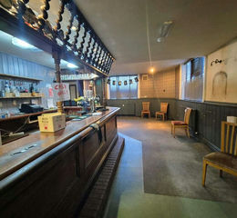 Main entrance to open plan TRADE AREA with central, wood constructed BAR SERVERY and wood shelf back bar with floor hatch to CELLAR. Loose seating for approximately 30. Wood panelled walls. There is a raised seating area which would accommodate approximately 15. Feature fireplace/log burner.