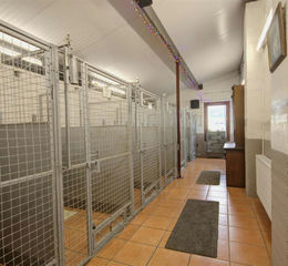A well designed kennel block incorporating two blocks of ** stainless steel kennels, with central food prep and storage room. Each kennel has direct access to the large secure exercise enclosure.