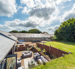 Tucked away in south Cornwall’s peaceful countryside near the Helford River and Constantine, this elegant barn conversion offers charm and serenity. The main house features four bedrooms and has been thoughtfully extended, accompanied by two inviting holiday cottages. Set within 1.6 acres of level lawns and a flourishing kitchen garden, it’s a haven for outdoor entertaining. Located at the end of a long private lane and designed with entertaining and privacy at its heart, this secluded retreat is the perfect blend of character and tranquillity.
