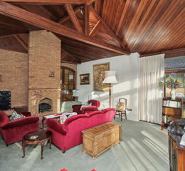 This is a light and airy room with triple aspect full length windows overlooking the rear garden. Open fireplace, two radiators, vaulted and timbered ceiling, Door to rear garden.