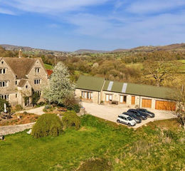 Stokenhill Farmhouse is a Grade II Listed country home tucked away at the end of a no-through lane near the village of Whiteshill, set within 3.8 acres of gardens and paddock with far-reaching views across the Cotswold countryside. Dating back to 1685, the house is rich in historic character, with mullioned windows, timber floorboards, exposed beams, and stone fireplaces, all thoughtfully preserved and enhanced by the current owners to create a stylish, functional home. Spanning three floors plus a cellar, the main house offers four well-proportioned bedrooms, two elegant reception rooms, a bespoke family kitchen with garden views, and practical additions such as a boot room and cloakroom. Upstairs, the bedrooms enjoy light-filled interiors and countryside outlooks, with a traditional bathroom and modern shower room. Two further living spaces provide excellent flexibility: a detached one-bedroom cottage ideal for guests, extended family or a home office, and The Byre, a recently built annexe in traditional Cotswold style, featuring an open-plan living area, sleek kitchen, bedroom suite, and providing access to a large store and double garage, efficiently heated via an air source heat pump. The property has access over a private lane which leads to a gated tarmac driveway, and beyond to an ample gravelled drive. The gardens are attractively landscaped with mature beds, a large lawn, and south-facing terraces perfect for outdoor dining, while a lower lawn leads into a paddock—ideal for grazing, hobby farming, or simply enjoying the joys of the countryside. Stokenhill Farmhouse offers period charm, flexible accommodation, and stunning views, creating a highly functional and tranquil rural lifestyle.