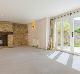 Wrapped in the agrestic backdrop of the north Oxfordshire countryside, the barn unfolds over nearly 1700 Sq. Ft. and draws together rustic charm with modern day practicality. Entry is via the central hallway which gives way to a generously proportioned cottage style kitchen complete with integrated appliances and Range cooker. The voluminous, open-plan living area unfolds across the right of the plan. A traditional wood burner sat within a stone fireplace can be found at the far end, offering a cosy focal point whilst French doors allow for direct access to the garden. The ground floor also offers a downstairs W.C and utility room for added convenience.