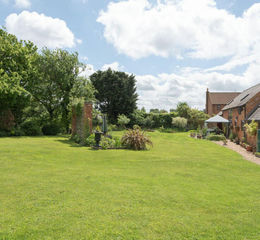 - Large back garden with seating areas, pond, vegetable patches, greenhouse and field views