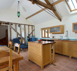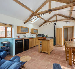 Property - Originally recorded on a map in the early 17th Century, The Stables was part of an historically important collection of barns converted into dwellings in the early 2000s. This charming Grade ll listed home is rich in character, featuring original oak beams and distinctive hexafoil patterns adorning an upstairs wall. Upon entering, a generous entrance hall welcomes you, with stairs ascending to the first floor and an open flow into the substantial kitchen and dining room. This area is well-appointed with ample units, a central island, and a Rayburn for heating and cooking. Leading off the kitchen/dining room is a rear porch with a stable door to the exterior, a convenient walk-in storage cupboard and access to the utility room, which includes a butler sink. The property provides three ground floor bedrooms, two with en-suite facilities, and a separate bathroom. The first floor unveils a striking living room with oak flooring a wealth of original oak beams, original mullioned windows and a wood-burning stove. Enhancing modern living are the benefits of underfloor heating and an in-built vacuum system.