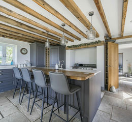- Living and dining areas with exposed timber frames, 2 sets of bi-fold doors and underfloor heating