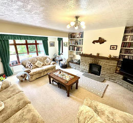 Living Room - 5.26m x 4.39m (17'3" x 14'5") - An attractive and spacious reception room with windows to front and side elevations. Exposed stone fireplace with inset wood burner.