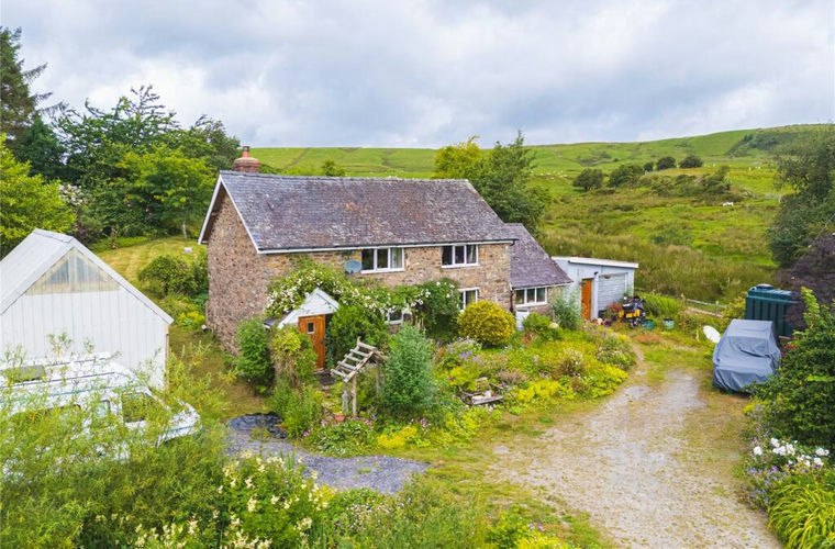 Situated in an elevated position with views over the beautiful mid-Wales countryside is Llechwedd Ddu, a stone cottage boasting original character features, oodles of charm and enjoying approximately 1 acre of garden and land. The property has accommodation comprising of a porch, living room, kitchen/dining room, utility room, bathroom, two double bedrooms and a landing/occasional bedroom. Connected to the home is a garage/workshop and there are various outbuildings. Externally is a haven for wildlife with the garden having colourful plants and flowers, a pond and vegetable area.