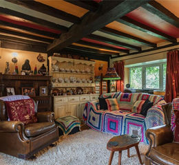 The wooden gate opens onto a spacious driveway with ample parking. Mature trees, shrubs, and plants frame the grounds, along with a natural pond that attract a variety of wildlife throughout the year and a stream. A side pathway provides access to the rear garden, which is mainly laid to lawn, with paths meandering around the land. Bright, seasonal flowers add colour and charm, while various seating areas offer perfect spots to relax and enjoy the beautiful views. There's also a designated lawned area to the rear of the property for al fresco dining and entertaining during the warm summer months. For those with green fingers, a vegetable area with raised beds and a pollytunnel offers the chance to embrace a taste of the 'Good Life' and there is a chicken coop. To the side is an open barn with steps leading to an enclosed, floor area for dry storage.