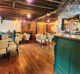 With seating for 36 on two levels, block wooden flooring, exposed beamed ceilings and part panelled walls make a quality feel.