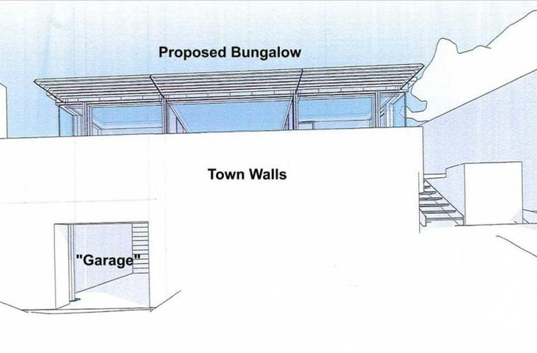 The Proposed Bungalow will sit immediately behind the Town Walls. The south elevation will incorporate extensive fenestration in order to maximise natural light and potential views over the extensive adjacent Commons Parkland towards the countryside on St. Daniels Hill.