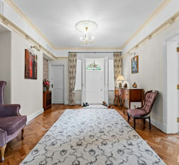 An elegant front door, flanked by a cast stone surround opens into a welcoming entrance vestibule, with steps rising to a grand reception hall, adorned with original parquet flooring and hosting the staircase, this area provides the central axis of the home.
