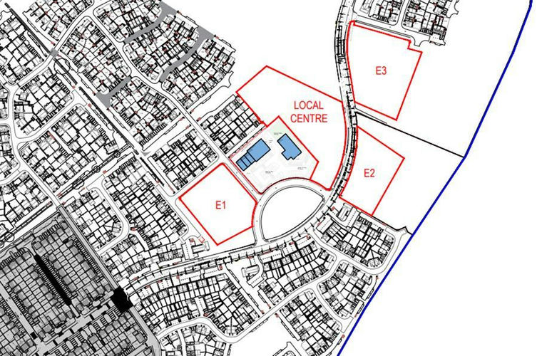 Site E1 totals approximately 0.56 hectares (1.39 acres) and will be situated next to the local centre.