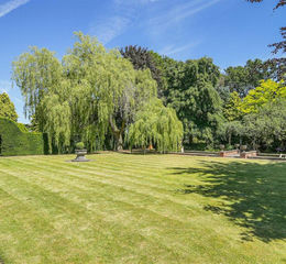 The gardens are a true delight with numerous established feature trees and must be seen in person to be appreciated. There are lovely features such as a water garden, large sun terrace, a secret garden and a stunning rockery. A wonderful safe space for children, pets and adults alike. The gardens are very private and face South & East. There is also a traditional grass tennis court which is fully encompassed by mature Yew hedging.