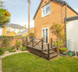 The property enjoys the peace and privacy of an enclosed garden, which extends to the side and rear of the house, with a sunny south-westerly orientation. Immediately to the rear of the house is a paved seating area, which leads around to the main garden, which includes a neatly maintained lawn with planted borders and steps up to an elevated timber deck. The deck provides the perfect place to enjoy a drink or a meal on a summer's evening, with double doors opening out from the kitchen.