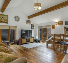 General - The Small Barn is a stylish, contemporary conversion in a lovely country setting. The barn has been converted with considerable flair and sensitivity, creating a wonderful family home. The accommodation is well laid out with a contemporary open plan living area, three double bedrooms, one of which has an en suite and a luxurious bathroom. Outside, there is a good sized and private rear garden, together with a double garage in the courtyard. There is an air source heat pump and underfloor heating, creating a comfortable living environment. The present owners have also installed solar panels which significantly reduces the running costs. The Small Barn is approached down a long private drive from Desford Lane, leading to a block paved courtyard in front of the barn.