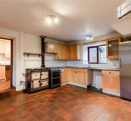 Entering through the front door, you are welcomed into a useful utility room featuring original quarry tiled flooring and fitted units, providing excellent storage space. Leading off the utility room is a ground floor shower room, along with access to a boot room equipped with power and lighting and a door opening to the rear of the property. A further door from the utility room leads into the kitchen. The spacious kitchen/breakfast room continues the quarry tiled flooring and is flooded with natural light from windows to both the front and rear aspects. In addition to a range of wall and base units, the kitchen benefits from an oil-fired Rayburn.