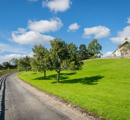 The approach is as impressive as the house itself. A long, sweeping private drive leads through open fields, flanked by mature trees and dry-stone walls, before arriving at the gardens. Every acre you pass belongs to the house, reinforcing the sense of privacy and permanence. A graceful monkey puzzle tree marks the entrance, while landscaped borders and a traditional greenhouse lend charm to the setting.