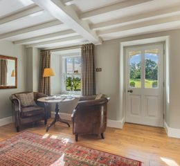 Two further bedrooms are generous doubles, both filled with light and enjoying views over the land. Exposed beams and original details remind you of the house's history, while proportions and finishes provide comfort. A fourth bedroom sits nearby, also well-sized and versatile for guests, children, or a study.