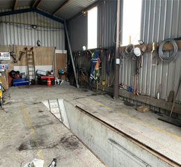 To the exterior is a Double Workshop, which has been used to maintain HGV vehicles 39'10 x 19' and 38'10 x 15' approximately. The workshop has two parts and has a maximum height to ridge of 16' and 13' respectively and approximately. There is a large work pit and power and lighting within and both areas are accessed via tall double doors.