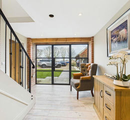 Entrance Hall - a good sized and striking entrance hall with a glazed door and glazed panels to either side providing lots of light. Staircase to the first floor with bespoke wrought iron handrail.